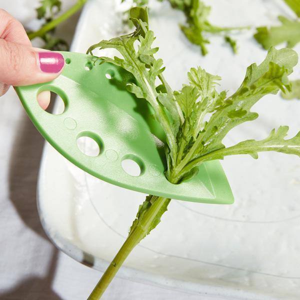 - Projetado para descascar folhas de couve, acelga, alecrim, tomilho, orégano e outros vegetais e ervas de diferentes tamanhos