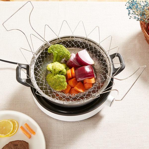 • Projetada para cozinhar, ferver, fritar, escaldar, branquear, enxaguar, esticar, armazenar e muito mais