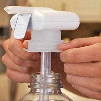 Este dispensador transforma qualquer recipiente de bebidas em um dispensador de bebidas fácil de usar que elimina a necessidade de levantar garrafas pesadas e também evita derramamentos, pingos e resíduos. Agora, as crianças podem pegar seu próprio copo de suco, ou você pode rapidamente adicionar leite à sua tigela de cereal. Ele tem um gatilho de toque para iniciar o fluxo e a bomba de extração mágica atrai o líquido para o topo. Esta é uma necessidade para todos os lares!