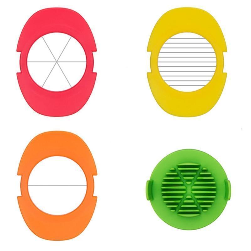 Deseja cortar ovos da maneira rápida e fácil? Nosso Egg Slicer - Fatiador de Ovos 3 em 1 corta ovos cozidos em fatias, gomos ou metades. Pode também ser utilizado para cortar algumas frutas e vegetais, produtos do dia a dia e bolos. As três funções de cortar ao meio, cortar em gomos e fatiar estão integradas. Seu design prático facilita na hora de guardar e economizar espaço.