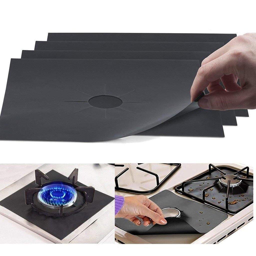 O Protetor de Fogão é ideal para proteger o seu fogão de resíduos que podem sujá-lo ou danificá-lo, como óleo de fritura, que lambuza, acumula e dificulta a limpeza. O protetor vem com 4 peças para 4 bocas em um tamanho padrão que se encaixa em qualquer fogão. Você também pode cortá-lo caso queira e fazer o tamanho que preferir. Material de alta qualidade, feito com pano de fibra de vidro com revestimento em teflon, antiaderente, fácil de limpar e remover gordura, sujeira e poeira quando lavado com água e sabão ou na lavadora de louças, foi projetado para usar diversas vezes.