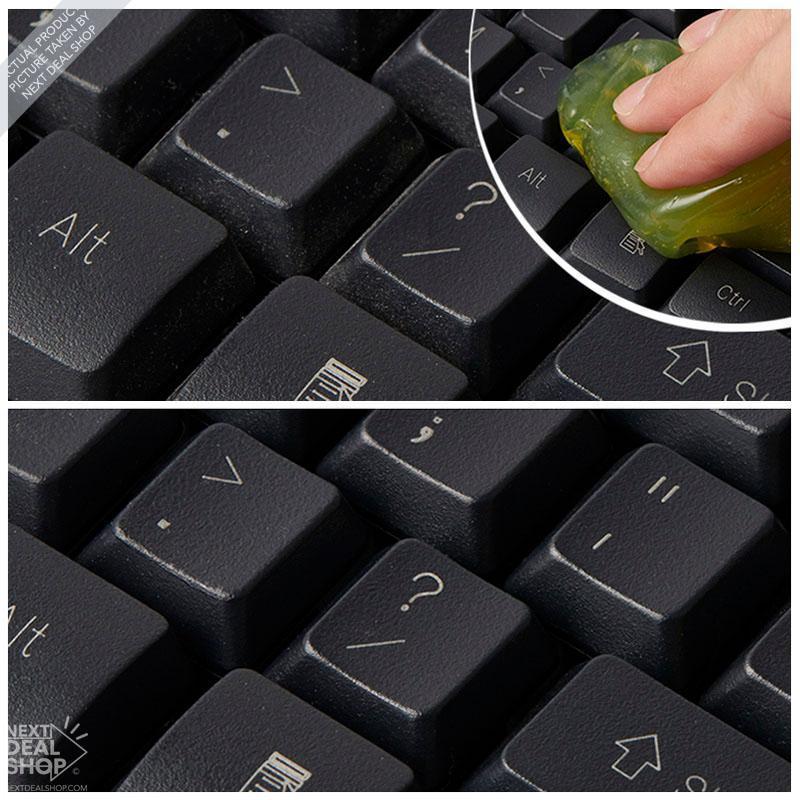 Diga adeus à **poeira irritante** e detritos escondidos no seu teclado! Basta colocá-lo no teclado e posicioná-lo nas aberturas, em seguida, o **gel transparente** mostrará sua mágica, absorvendo o pó sobre si mesmo.