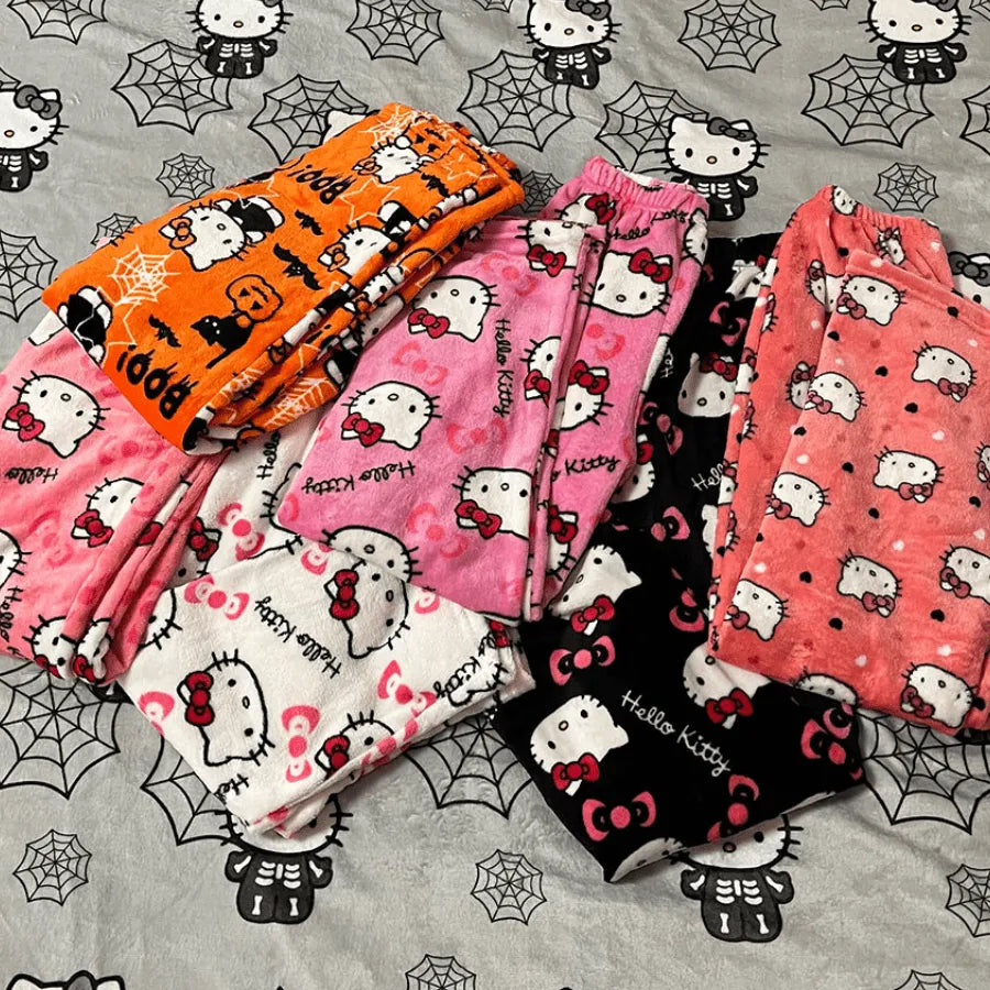 Calça de Pijama Peluciada Pijama Feminino Hello Kitty