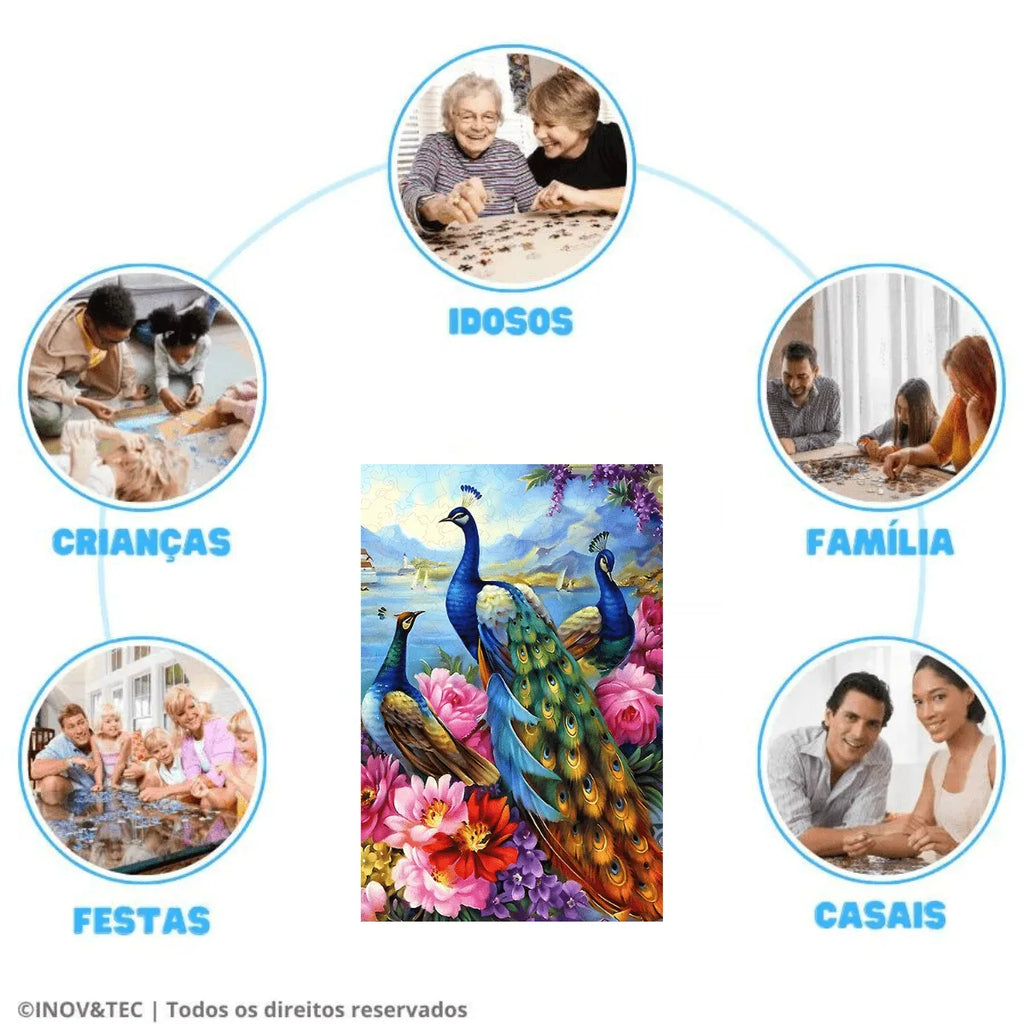 Quebra-Cabeça de Madeira Inova WOOD PUZZLE - Pavões em seu Habitat | Diversão com Diversos Benefícios